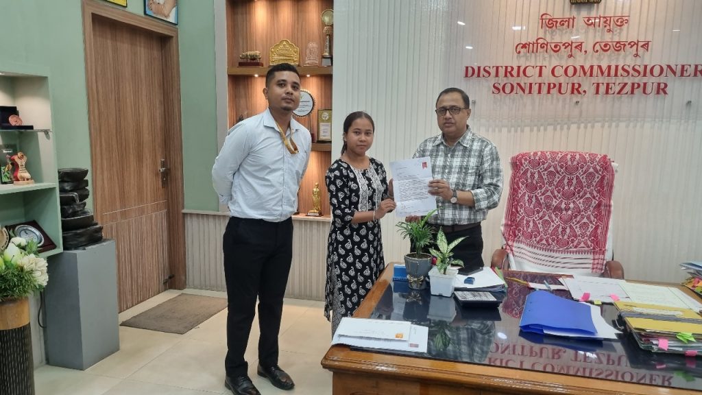 Sonitpur, Assam : On 4th August 2025, Nita Sawra, peer leader of the adolescent group as part of the Creating Child Friendly Communities in Tea Gardens of Assam, from Sessa Tea Estate, Sonitpur district, demonstrated commendable leadership and initiative by engaging directly with the district administration on an issue of menstrual health and hygiene. In a meeting facilitated by the CINI team, Nita met District Commissioner Shri Ananda Kumar Das and submitted a formal letter on behalf of her adolescent group, requesting support in facilitating access to affordable sanitary pads for adolescent girls across tea garden communities. Acknowledging the concerns raised, the District Commissioner assured that the matter would be forwarded to the Joint Director of Health for necessary action and follow-up. Such stories reinforce one of the core objectives of the intervention, i.e., building adolescent agency to influence and contribute to decisions affecting their well-being.