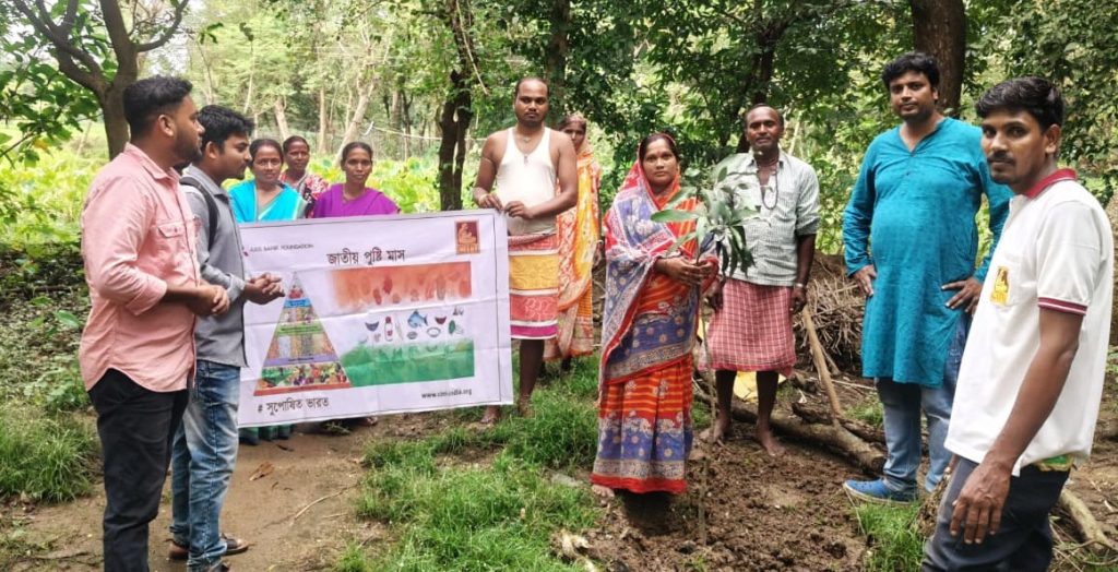 As part of National Nutrition Month2025 the Rural Health & Nutrition Project supported by Axis Bank Foundation, organized an awareness activity across Jhalda-I, Jhalda-II, and Baghmundi Blocks of Purulia, and Indpur, Ranibandh, and Hirbandh Blocks of Bankura under the theme Ek Ped Maa Ke Naam. In collaboration with PRADAN, nutritious tree saplings including guava and lemon were distributed to promote sustainable and locally available food sources. The initiative emphasized the importance of Kitchen Garden and backyard orchards for food and Nutrition Security, encouraged Tree Plantation for nutritional and environmental benefits, and raised awareness on the Ban on Single Use Plastic, fostering Eco Friendly alternatives and Empowering Communities for a healthier, greener future.