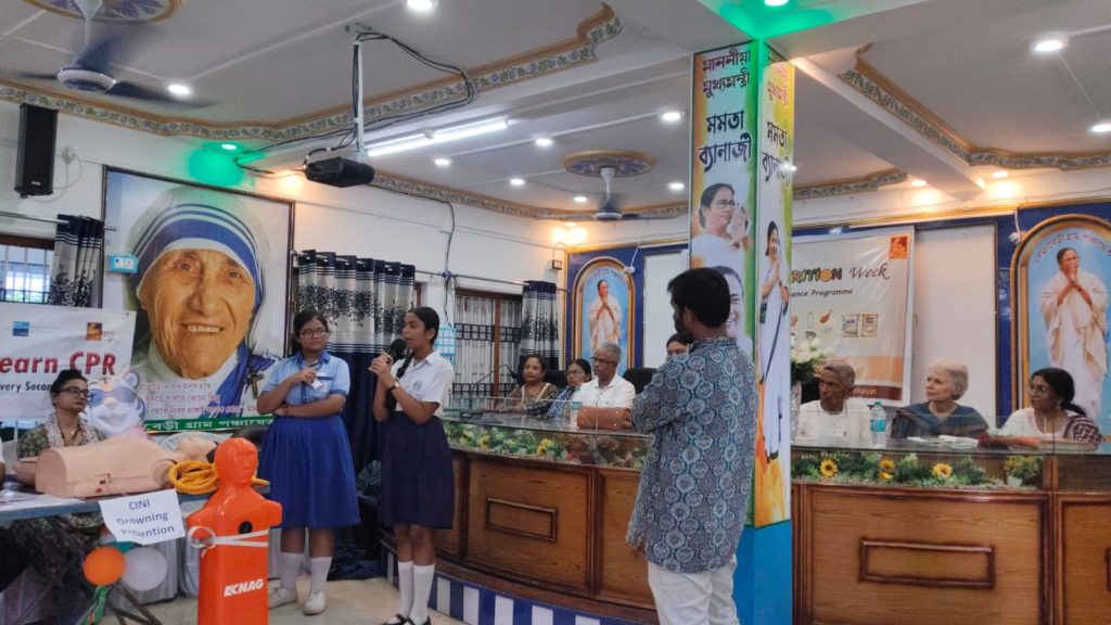 West Bengal: World Drowning Prevention Day was observed across various locations in West Bengal with the theme “Your story can save a life.” The central event took place at Rotary Sadan, Kolkata, in the presence of Senior Government Officials, members of CINI’s Senior Management, and community representatives from across the state. Experts and donors from around the world joined the programme virtually. The highlight of the event was the heartfelt sharing of real-life stories by community members who had saved lives and taken local initiatives to prevent drowning.