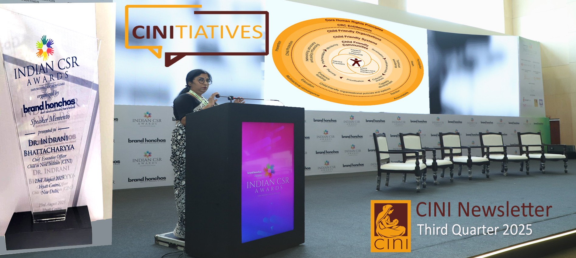 New Delhi: On August 23, 2025, Child in Need Institute (CINI) was honoured with the Most Impactful Nonprofit in Health award at the Indian CSR Awards in New Delhi, recognizing its transformative work in health and nutrition equity across India. At the ceremony, CEO Dr. Indrani Bhattacharyya unveiled CINI-Next, a visionary CSR & ESG framework focused on co-creating sustainable, community-driven solutions. She urged corporate leaders to move beyond compliance and invest in initiatives that foster dignity, agency, and resilience—shaping the India we aspire to by 2030.